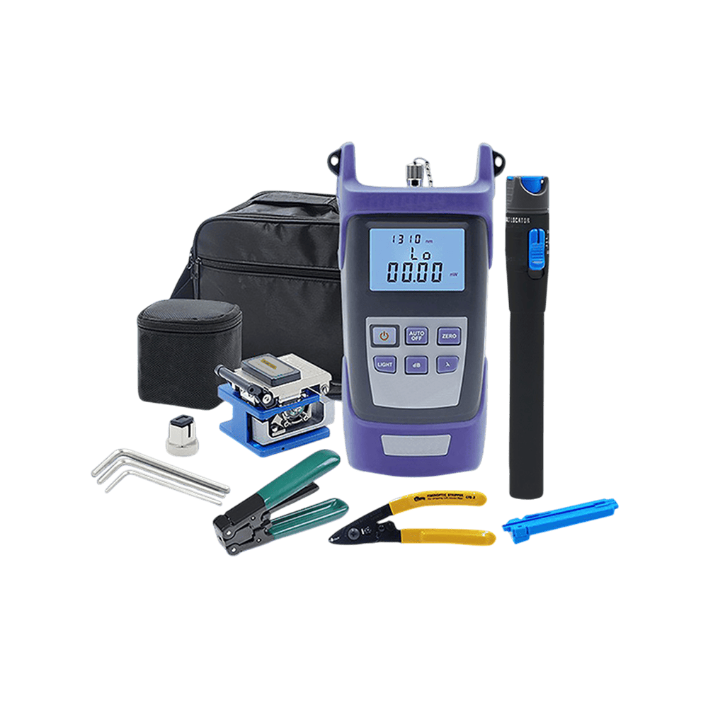 El Kit de Herramientas para Fibra reúne siete piezas esenciales para cortar, pelar, limpiar y certificar enlaces FTTH: cleaver de alta precisión, medidor de potencia amplio rango, localizador visual de fallas, peladoras, botella para alcohol y bolso de transporte. Ligero, económico y listo para uso intensivo en campo.