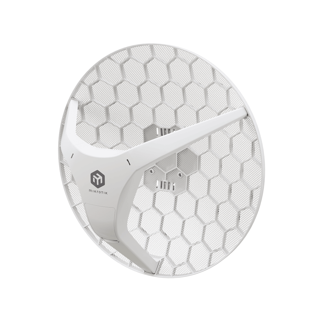 La Mikrotik LHG 5 ax integra una antena de alta ganancia 24,5 dBi en banda 5 GHz para establecer enlaces confiables hasta 20 km en condiciones favorables.