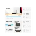 Wi-Fi Dual Band AC1200: Ofrece 867 Mbps en 5 GHz y 300 Mbps en 2.4 GHz para streaming fluido.