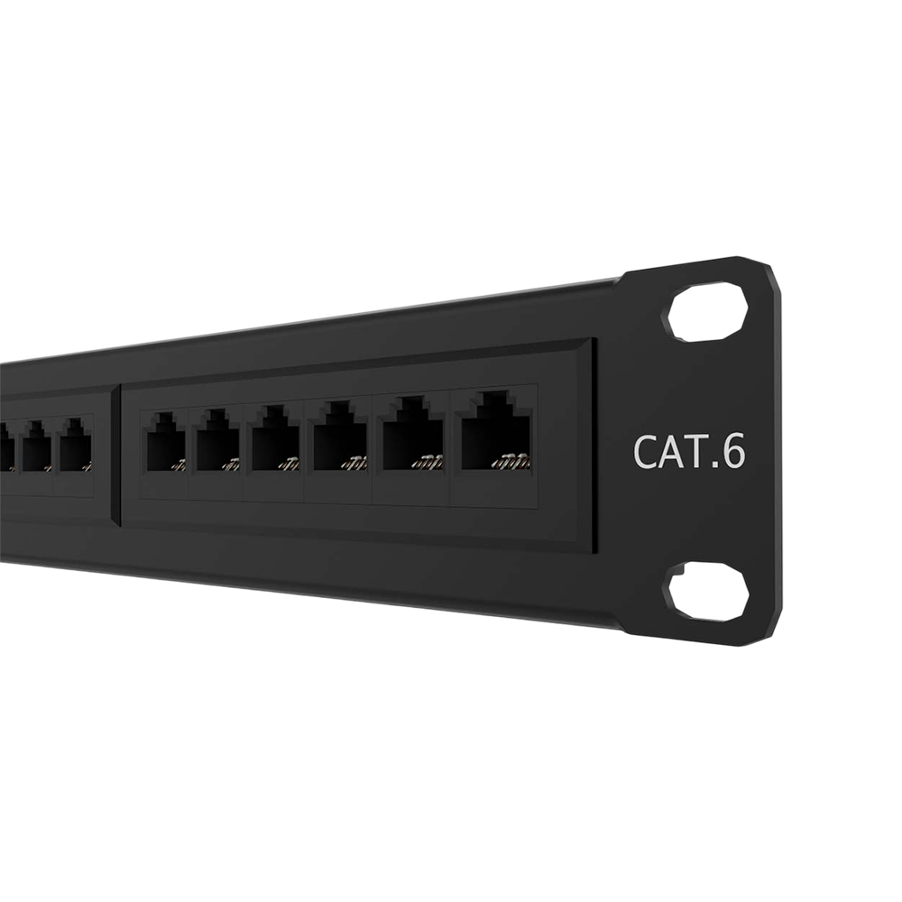 Ocupa solo 1 U de altura (1,75″) y 19,22″ de ancho, por lo que se integra en cualquier rack EIA-310 sin adaptadores. Incluye tornillos M5 y guía de punch-down para terminar en minutos.