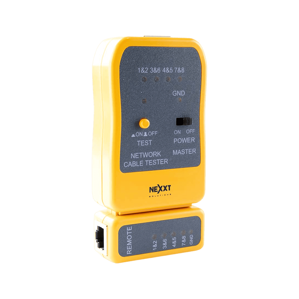 El Nexxt AW250NXT03 es un tester LAN compacto que verifica continuidad, cortos y pares cruzados en cables RJ45, RJ12 y RJ11. Incluye unidad maestra con LEDs y módulo remoto detachable para pruebas “one-person” hasta 305 m, ideal en instalaciones de datos y telefonía.
